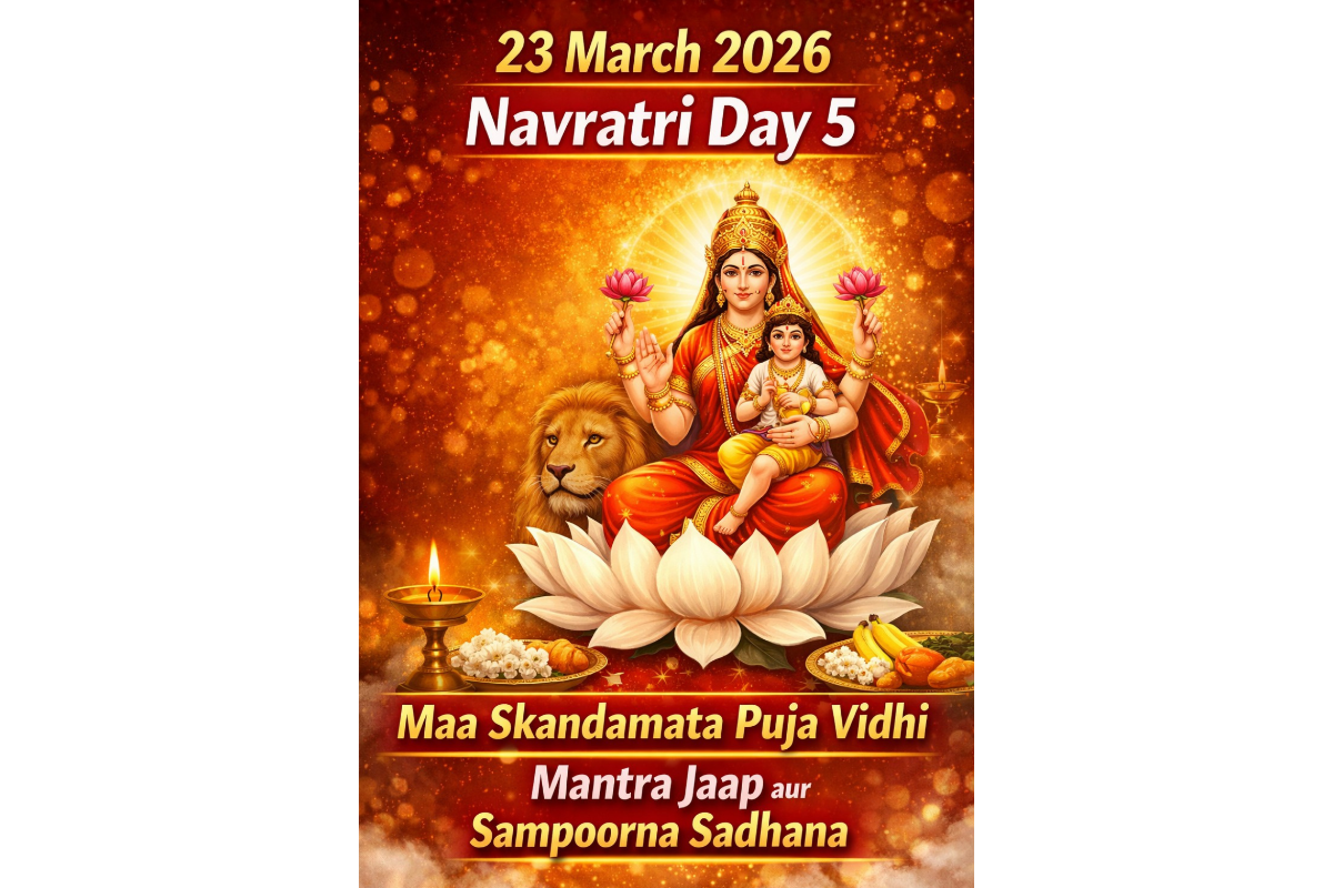 Navratri Day 5 is dedicated to Maa Skandamata, the divine mother of Lord Kartikeya. On 23 March 2026, worship Maa Skandamata with proper puja vidhi, mantra jaap, and Durga Saptashati paath to receive...