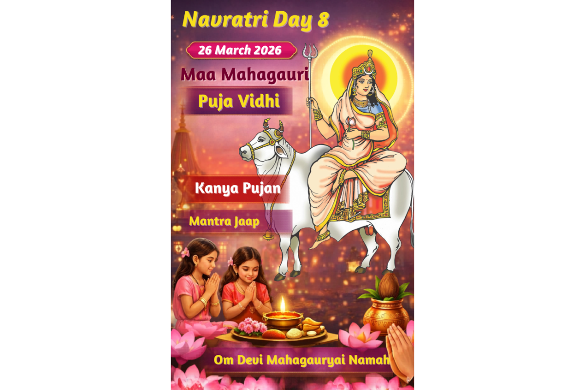 26 March 2026, Guruvar ko Navratri ka pavitra 8va din hai, jo Maa Mahagauri ko samarpit hai. Is din Maa Mahagauri ki pooja se jeevan me shanti, shuddhata aur sukh-samriddhi ka vardaan milta hai. Is...